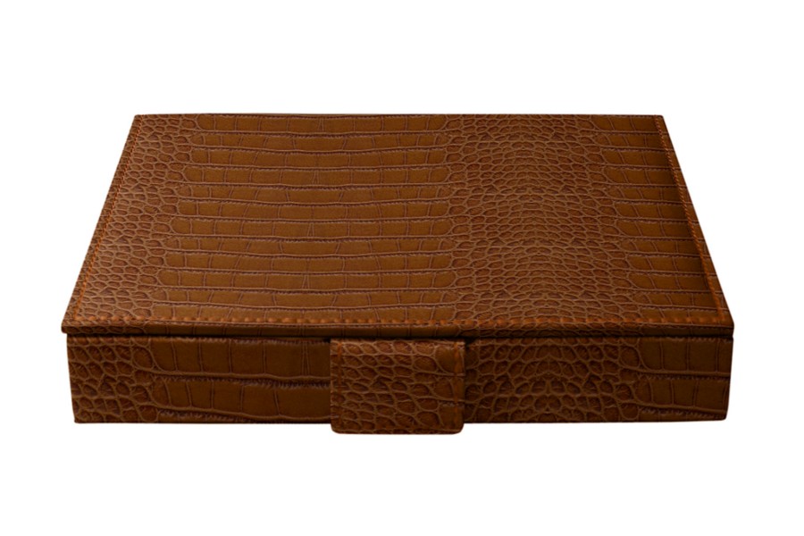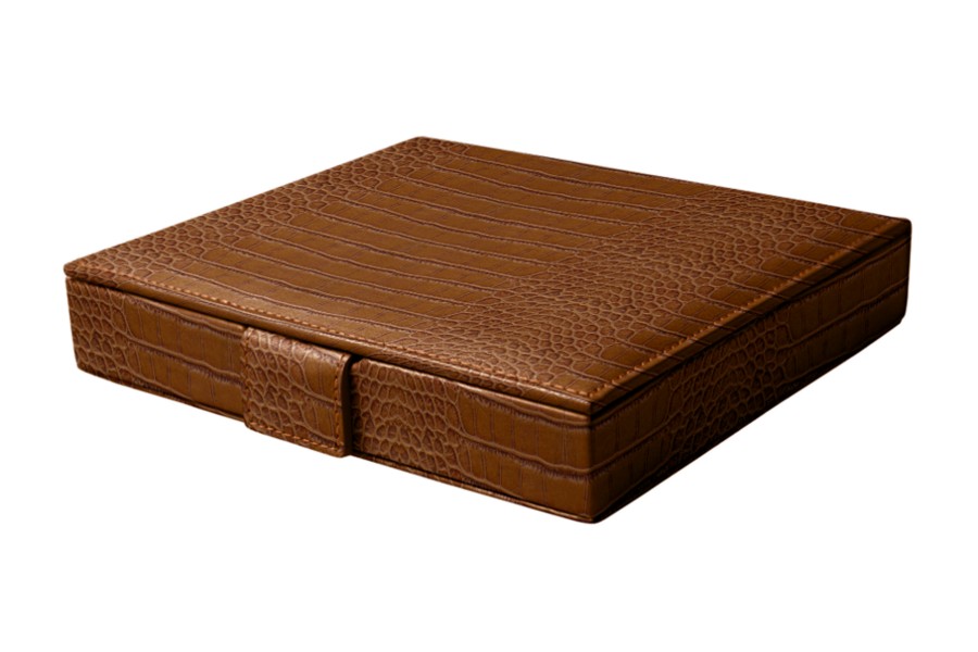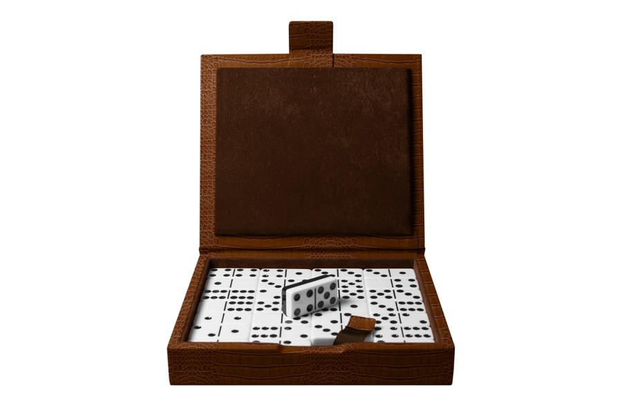 Domino Spiel - Camel - Leder in Krokodil- Optik