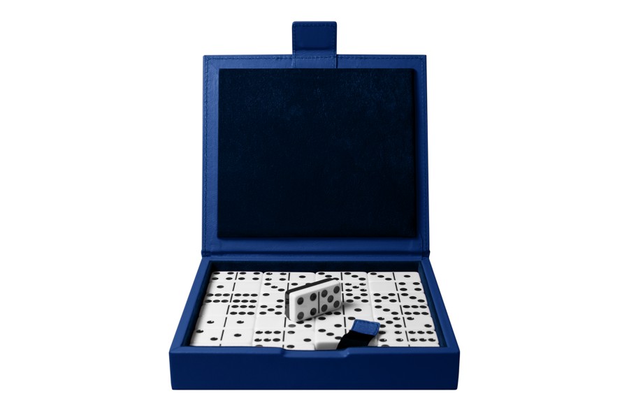 Dies ist für Liebhaber dieses sehr populären Spiels: die ultimative Luxus-Lederbox für Dominos. Das Behältnis besteht aus einer Holzstruktur, die mit den feinsten Echtledern exquisit bezogen ist und außerdem dank der magnetischen Klappe über einen sicheren Schließmechanismus verfügt. Die Dominos werden in ihrer Lederhülle feinsäuberlich sortiert aufbewahrt (kein Extra-Platz, daher bleiben die Steine, wo sie sind). Beim einfachen Entnehmen der Dominos hilft Ihnen ein praktisches Zugband.