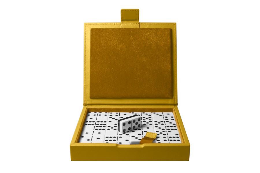 Dies ist für Liebhaber dieses sehr populären Spiels: die ultimative Luxus-Lederbox für Dominos. Das Behältnis besteht aus einer Holzstruktur, die mit den feinsten Echtledern exquisit bezogen ist und außerdem dank der magnetischen Klappe über einen sicheren Schließmechanismus verfügt. Die Dominos werden in ihrer Lederhülle feinsäuberlich sortiert aufbewahrt (kein Extra-Platz, daher bleiben die Steine, wo sie sind). Beim einfachen Entnehmen der Dominos hilft Ihnen ein praktisches Zugband.