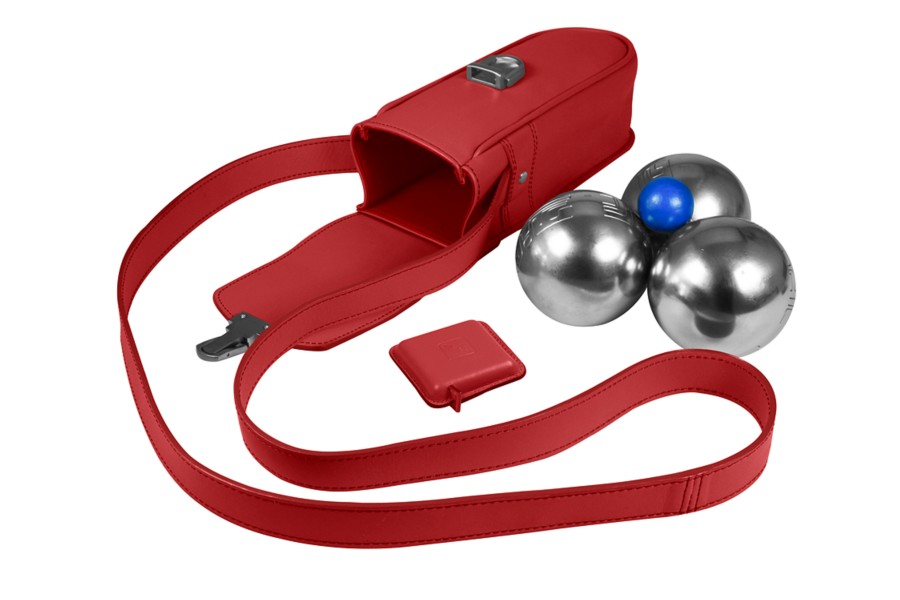 Ledertasche für 3 Pétanque-Kugeln - Rot - Glattleder