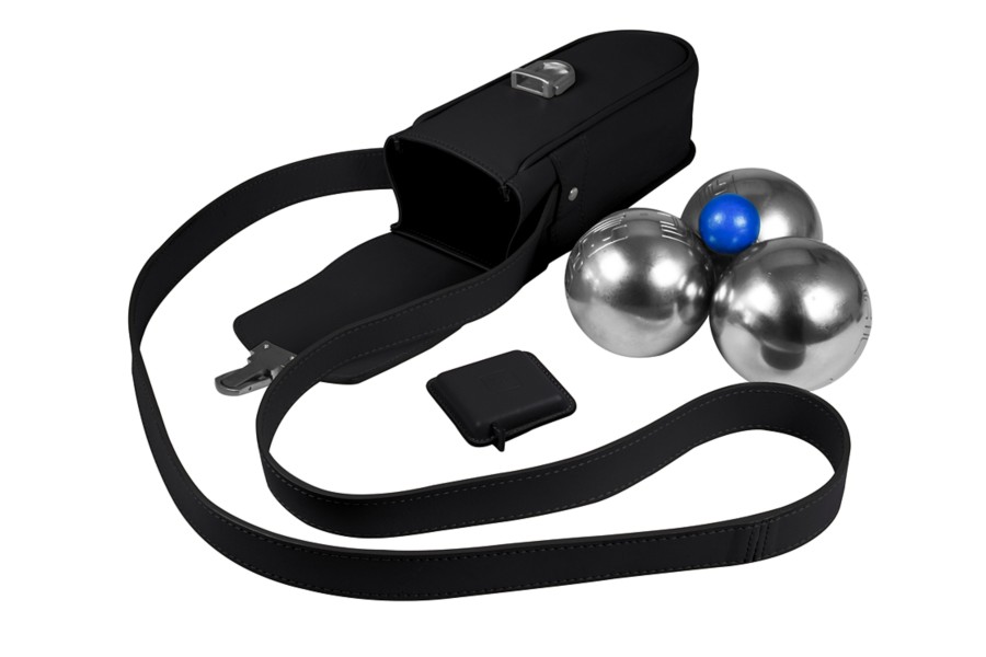 Ledertasche für 3 Pétanque-Kugeln - Schwarz - Glattleder
