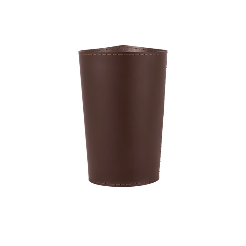 Der Papierkorb der Alpine Kollektion ist von Berggipfeln inspiriert und fügt sich ganz natürlich in Innenräume ein, die Wert auf Schlichtheit und Authentizität legen. Von einem ruhigen Chalet bis zu einem sorgfältig eingerichteten Büro verleiht er jedem Raum einen diskreten, geerdeten Charakter. Er ist aus vollnarbigem Rindsleder gefertigt und weist eine raue Struktur und eine handwerkliche Verarbeitung auf. Die abgeschrägten Kanten spiegeln die Silhouette des Gebirges wider, während eine dezent geprägte Bergkette jedem Exemplar ein unverwechselbares Detail verleiht. Dieser elegante Papierkorb ist vollständig handgenäht und verfügt über ein herausnehmbares Innenband, in das ein Kunststoffbeutel eingesetzt werden kann, ohne dass die klaren Linien beeinträchtigt werden. Er ist sowohl dekorativ als auch praktisch und passt zu modernen und rustikalen Einrichtungen. Wählen Sie Ihre Lederfarbe und verleihen Sie Ihrer Inneneinrichtung einen natürlichen Akzent.