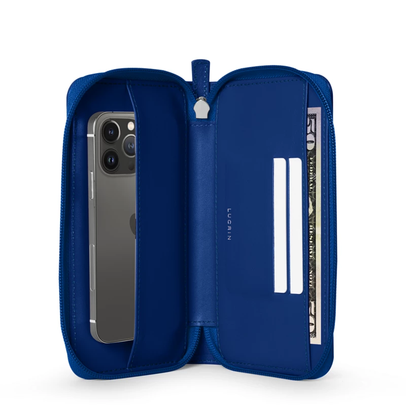 Die iPhone 13 Pro Brieftasche mit Reißverschluss von LUCRIN Geneva ist ein unverzichtbares Accessoire für Menschen, die immer auf Achse sind. Dieses Etui ist ein Beispiel für minimalistisches Design und besteht aus hochwertigem Leder, einem Reißverschluss und minimalistischen Metalldetails. Zwei große, flache Innenfächer bieten Platz für Ihr Handy und Bargeld sowie einige Schlitze für Ihre Kreditkarten, was diese Hülle sehr praktisch macht. Dank des geräumigen Designs können Sie zusätzliche Quittungen und wichtige Dinge in Ihrer Brieftasche verstauen, die mit einem Reißverschluss gut verschlossen ist. Die doppelte Schicht bietet optimalen Schutz für Ihr neues iPhone, das Sie mit einem Hartschalen-Case in dieser Brieftasche tragen können. Personalisieren Sie Ihr Etui in Ihrer bevorzugten Farbe und Lederart und wählen Sie kontrastierende Nähte, um eine wirklich einzigartige Hülle zu schaffen.