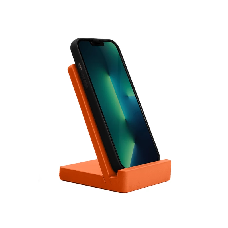 Ein eleganter Smartphone-Ständer für Ihr Telefon, das nie einen geeigneten Platz auf Ihrem Schreibtisch findet. Der Smartphone-Ständer besteht aus zwei Holzteilen, die sich perfekt ineinanderfügen, und bewahrt Ihr Smartphone leicht gekippt und vertikal auf. Dieser Smartphone-Ständer ist in einer breiten Palette an Farben erhältlich, die die anderen Accessoires auf Ihrem Schreibtisch perfekt ergänzen oder kontrastieren.