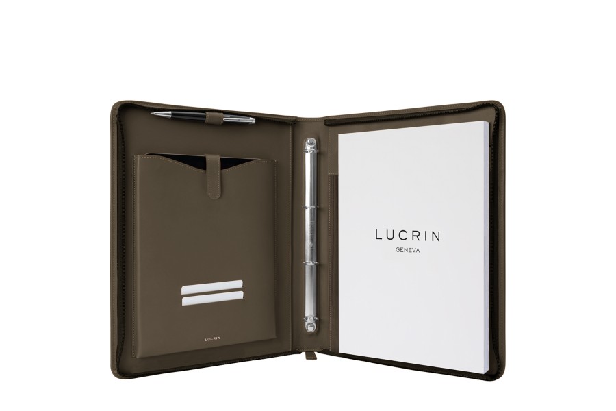 Entdecken Sie diese elegante Mappe mit Ringbindern aus natürlichem Leder und mit einem Reißverschluss.