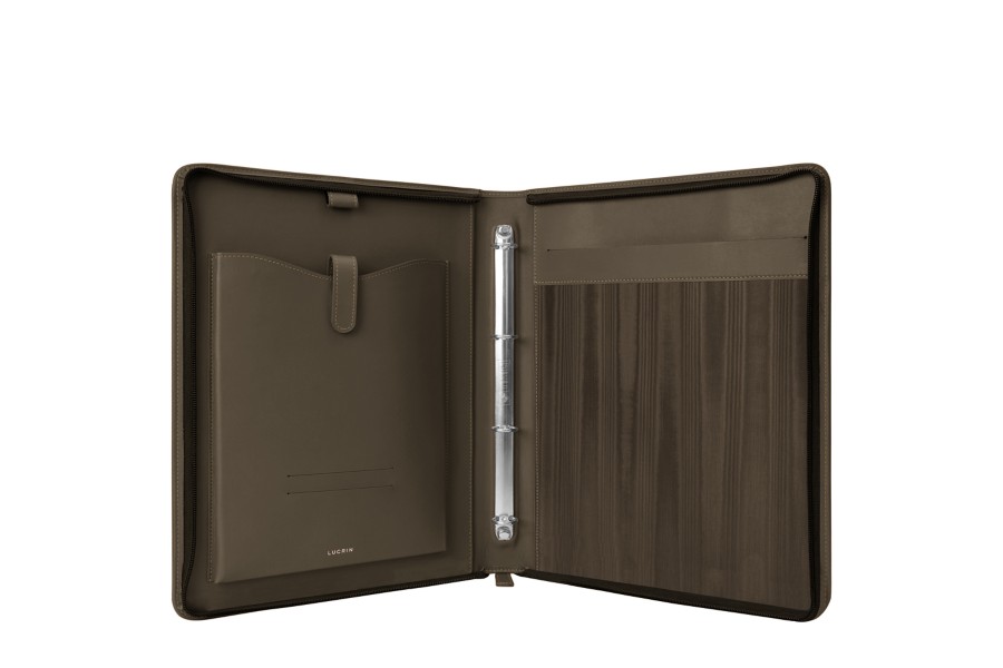 A4-Mappe mit Ringbindern - Dunkeltaupe - Glattleder