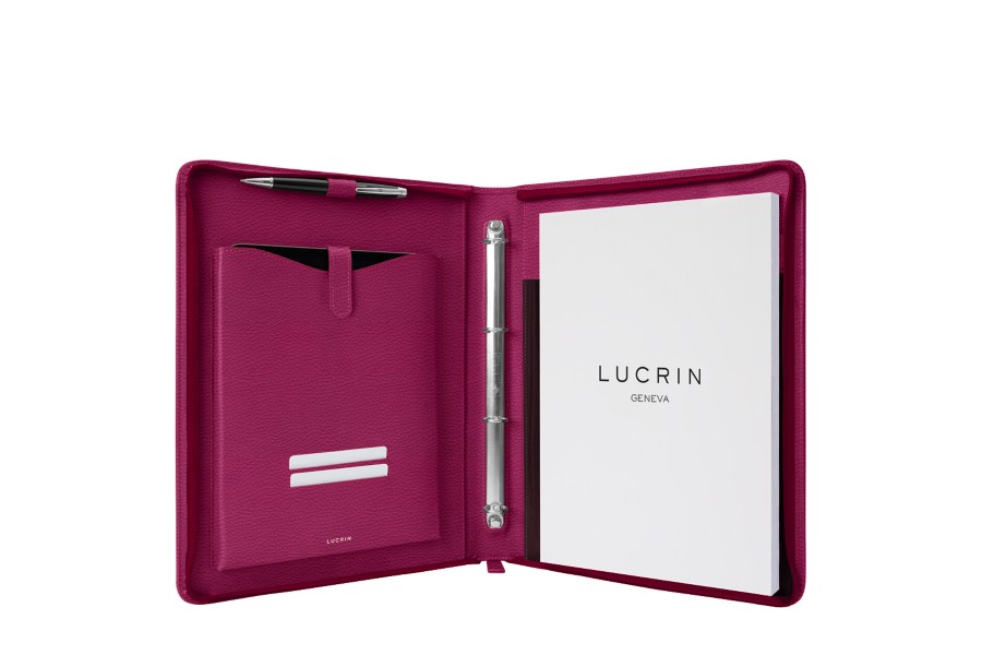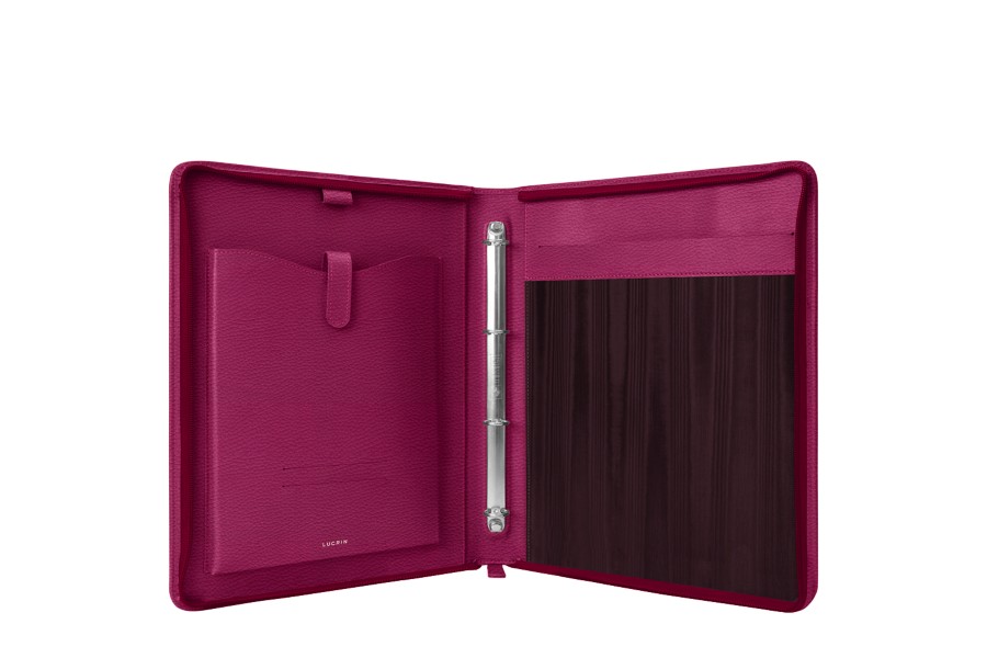 A4-Mappe mit Ringbindern - Fuchsia - Genarbtes Leder