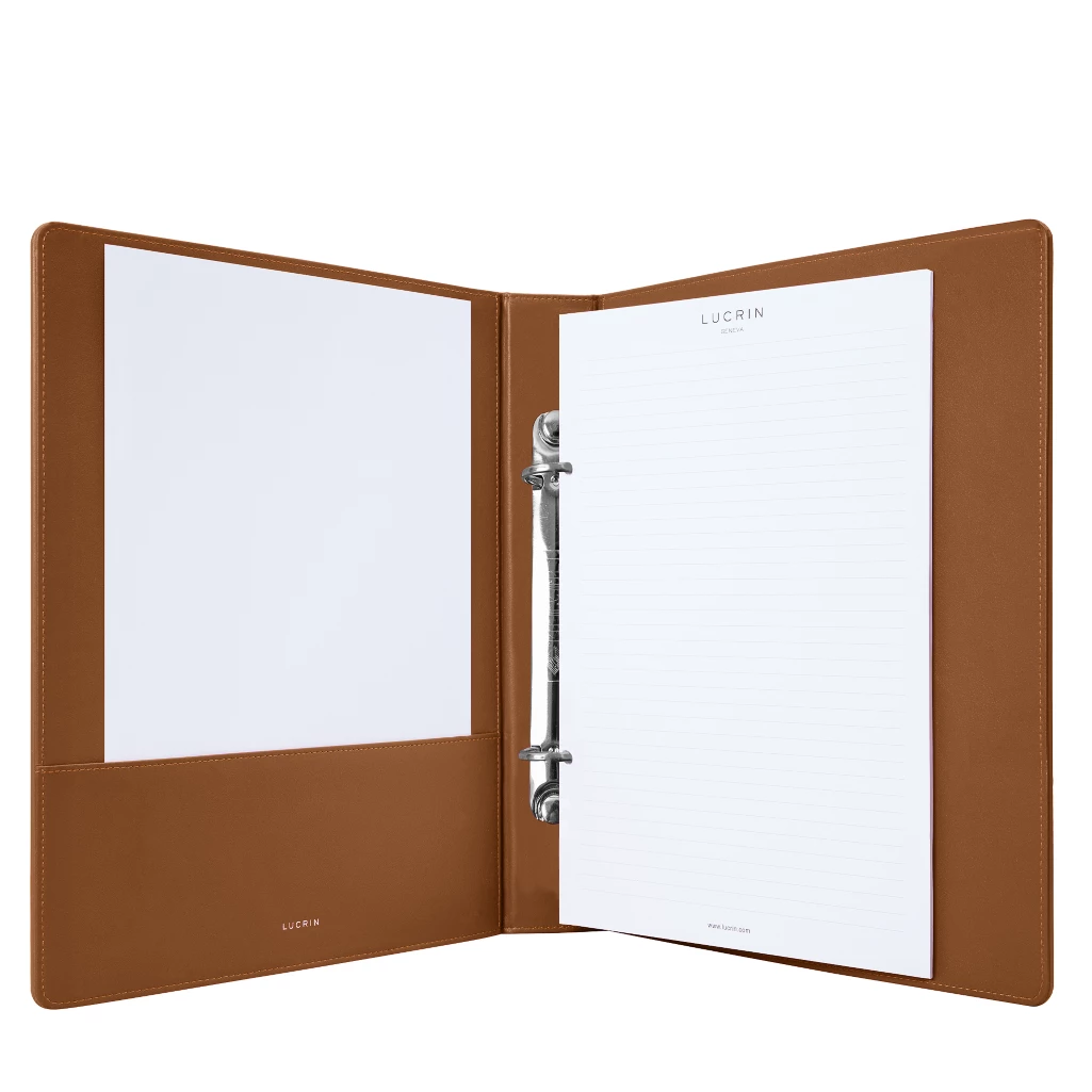 Entdecken Sie die Spitze der Raffinesse und Organisation mit unserem zeitlosen Leder-Ringordner mit zwei Ringen. Dieser in sorgfältiger Handarbeit aus hochwertigem Vollnarbenleder gefertigte Ordner verkörpert pure Eleganz und zeichnet sich durch Langlebigkeit aus. Veredeln Sie Ihr Modell mit einer Reihe von Personalisierungsoptionen, die verschiedene Farbtöne, Lederarten und maßgeschneiderte Gravuren mit Ihren Initialen, Ihrem Namen oder Ihrem Firmenlogo umfassen. Ideal, um Ihre wichtigen Dokumente geordnet aufzubewahren, sei es im Büro oder auf Reisen. Verleihen Sie Ihrem Leben mit unserem personalisierbaren Leder-Ringordner Flair und Finesse! Dieses Produkt ist mit der Nachfüllung ROS1165 kompatibel.