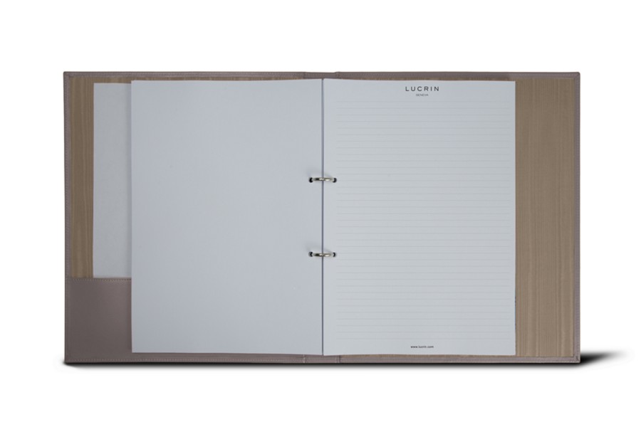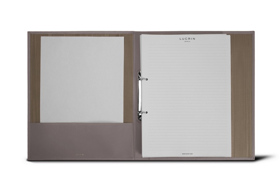 Wenn Sie nach einem A4-Ringbuch suchen, das sowohl edel wie auch praktisch ist, werden Sie sicherlich kein besseres finden als das Produkt in unserem Katalog. Die Mappe wurde von Lucrins besten Handwerkern aus täuschend echt wirkendem Leder gefertigt und weist zwei siberfarbene Ringe auf, die Ihr A4-Dokument zusammenhalten. Auf der linken Seite befindet sich eine flache Tasche von 9,5 cm, die wirklich sehr nützlich sein kann, um andere wichtige Dokumente oder Papiere zu verstauen.