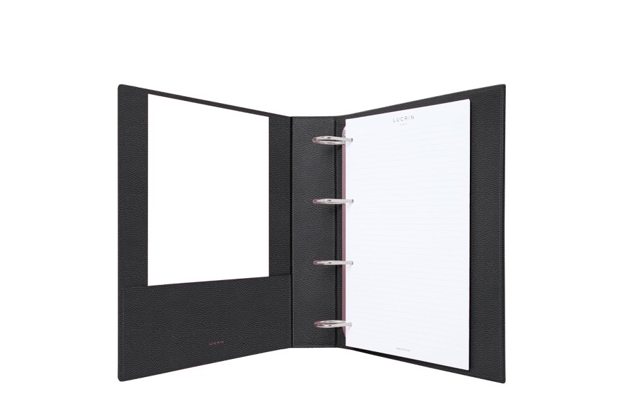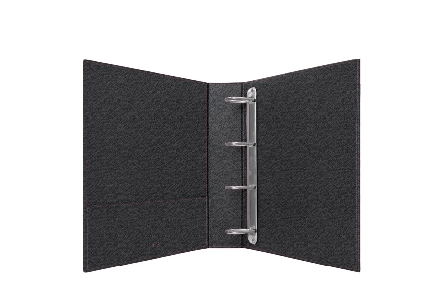 A4 Ringbuch - mit 4 Bügeln in D-Form (350 Blätter) - Schwarz - Genarbtes Leder