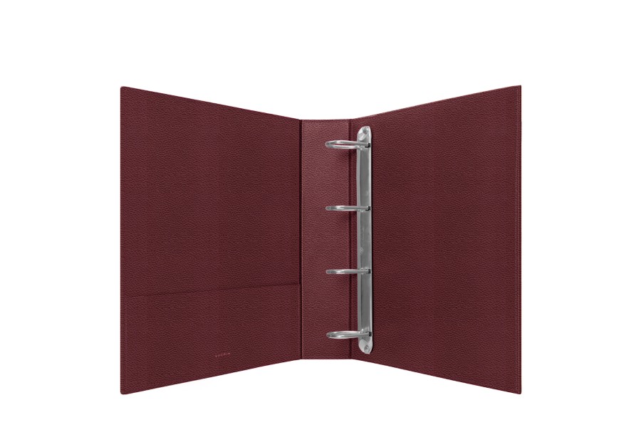 A4 Ringbuch - mit 4 Bügeln in D-Form (350 Blätter) - Weinrot - Genarbtes Leder