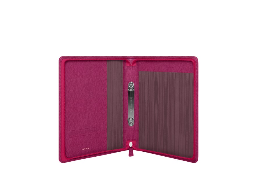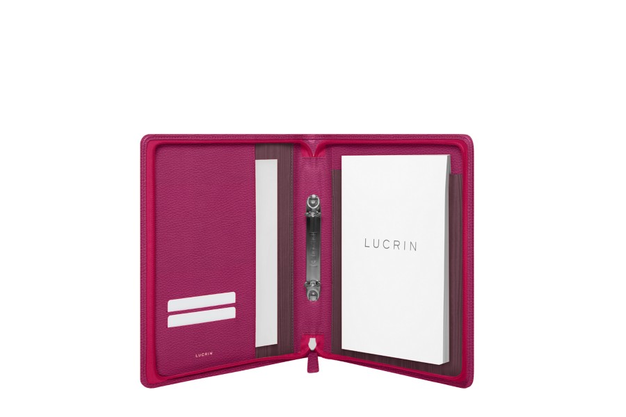 Dieser wunderschöne Blockhalter mit Reissverschluss und Zwei-Ring Ordner ist der ideale Begleiter für Meetings und sonstige Geschäftstermine. Dieses Accessoire aus echtem Leder ist für einen Block im A5-Format gedacht. Im Innenfach (13 x 23 cm) finden auch wichtige Dokumente Platz und – dank der 2 Ringe in der Mitte – sogar Ringbucheinlagen. Der Blockhalter besitzt ausserdem 2 Einsteckfächer für Ihre Kredit- oder Visitenkarten. Der Reissverschluss bewahrt Ihre Unterlagen und Karten vor dem Verlorengehen.