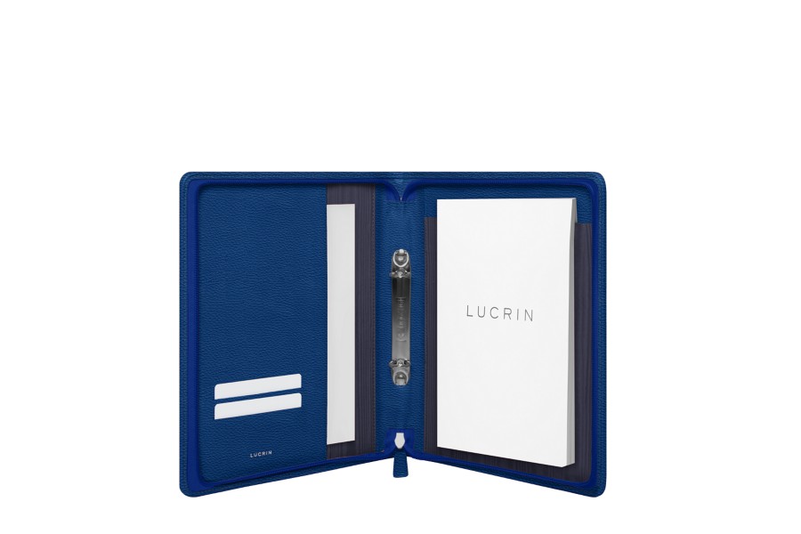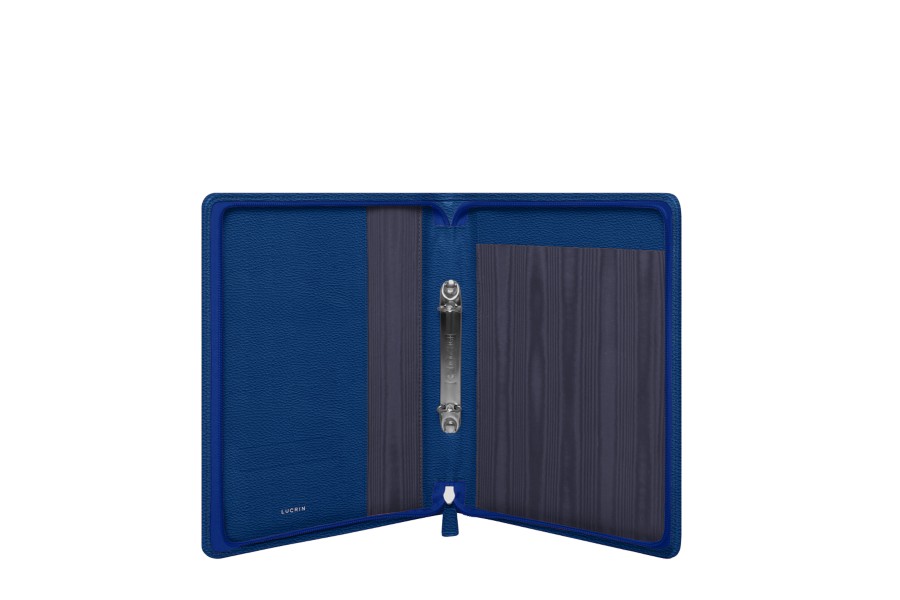 Blockhalter mit Reissverschluss & Zwei-Ring Ordner A5 - Königsblau - Genarbtes Leder