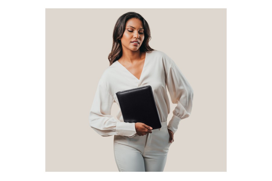 Dieser wunderschöne Blockhalter mit Reissverschluss und Zwei-Ring Ordner ist der ideale Begleiter für Meetings und sonstige Geschäftstermine. Dieses Accessoire aus echtem Leder ist für einen Block im A5-Format gedacht. Im Innenfach (13 x 23 cm) finden auch wichtige Dokumente Platz und – dank der 2 Ringe in der Mitte – sogar Ringbucheinlagen. Der Blockhalter besitzt ausserdem 2 Einsteckfächer für Ihre Kredit- oder Visitenkarten. Der Reissverschluss bewahrt Ihre Unterlagen und Karten vor dem Verlorengehen.