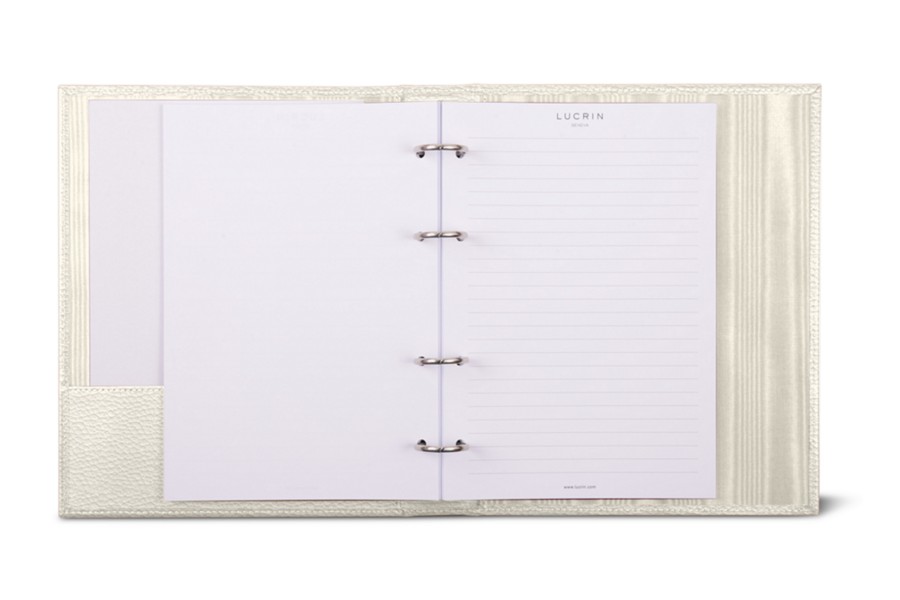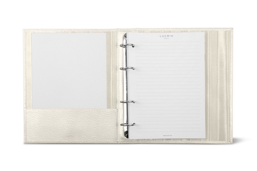 A5-Ringordner – 4 Ringe (100 Blätter) - Gebrochen Weiß - Genarbtes Leder