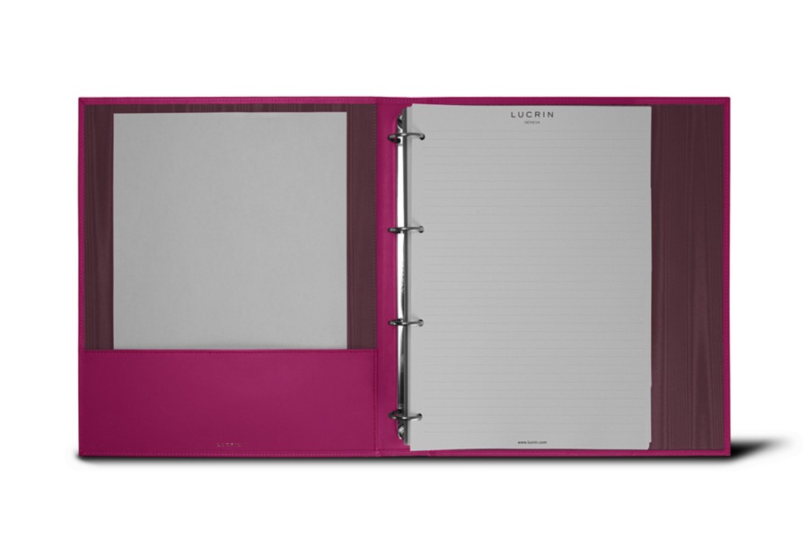 Dieses von den besten Lederhandwerkern konzipierte Ringbuch im A4-Format hat vier große Ringe, die geeignet sind, ungefähr 200 Blatt 80 g Papier zu fassen. Auf der linken Seite des Ringbuches befindet sich ein sehr praktisches flaches Fach (26 x 8,5 cm), in dem Sie weitere Blätter oder Dokumente verstauen können. Dieses lederne Ringbuch im A4-Format ist ideal für diejenigen, die gerne mithilfe von luxuriösen, ledernen Büro-Accessoires Ordnung halten.
