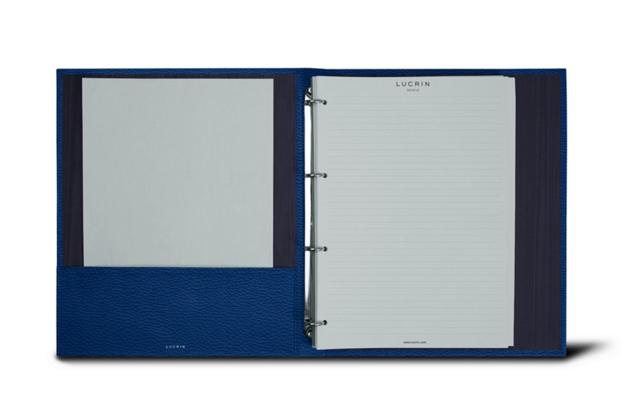 Ringbuch A4 - 4 Ringe (100 Blatt Papier) - Königsblau - Genarbtes Leder