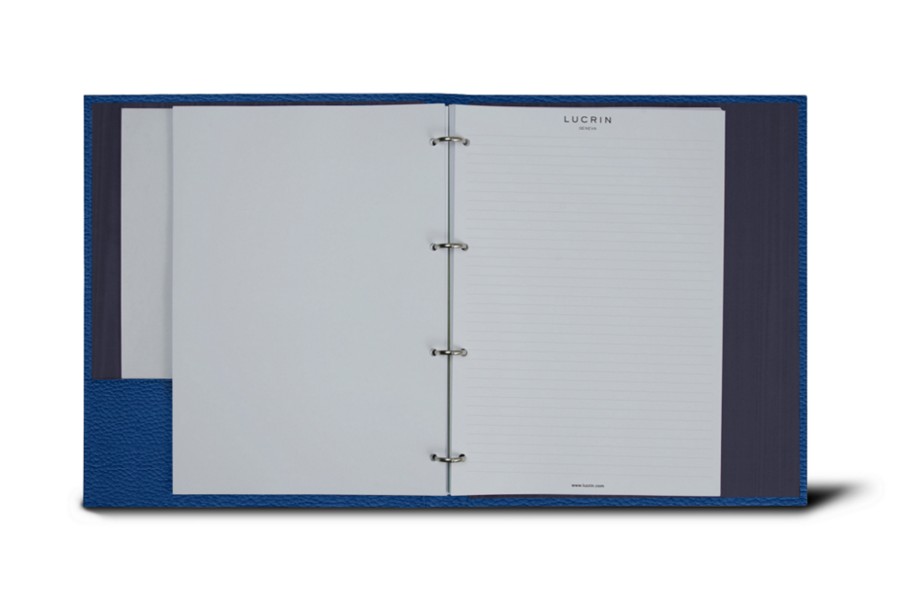 Dieses Ringbuch im A4-Format ist aus natürlichem, echtem Leder gemacht und wurde von den besten Kunsthandwerkern geschickt veredelt. Es hat vier kleine Ringe, die ungefähr 100 Blatt 80 g Papier fassen. Ein flaches Fach (25,5 cm x 8,5 cm) an der linken Seite erlaubt es Ihnen, weitere Dokumente zu verstauen. Das lederne A4-Ringbuch von Lucrin ist das perfekte Luxus-Accessoire für Ihr Büro, für die Menschen, die Ordnung schätzen.