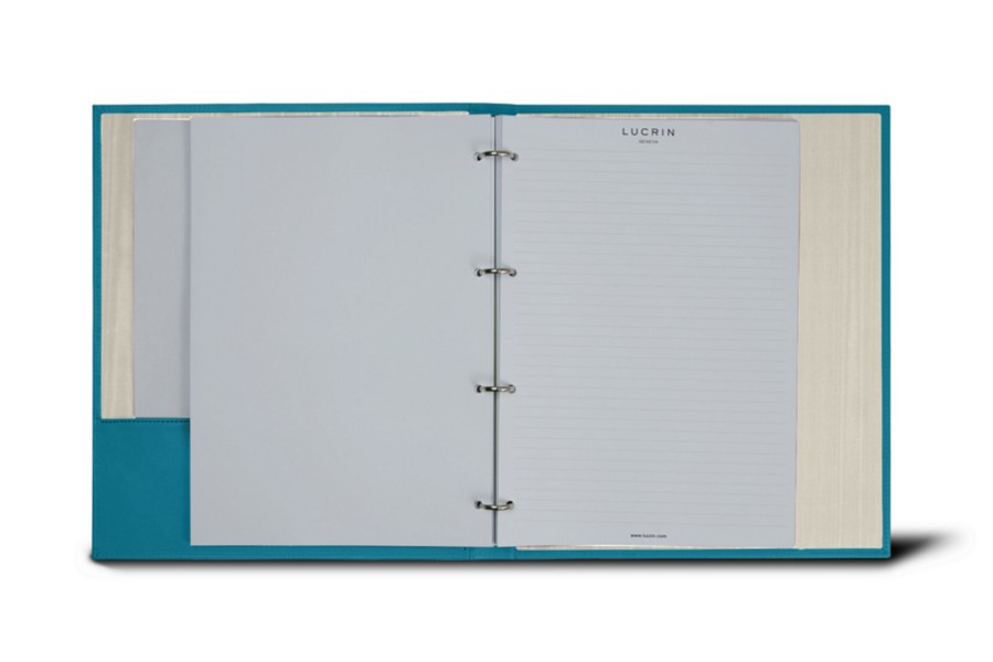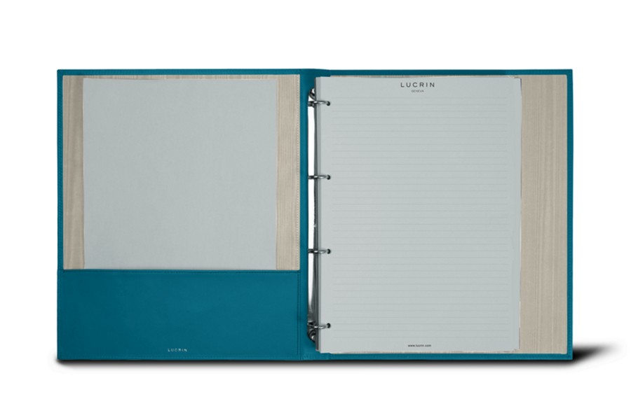 Ringbuch A4 - 4 Ringe (100 Blatt Papier) - Türkisblau - Glattleder