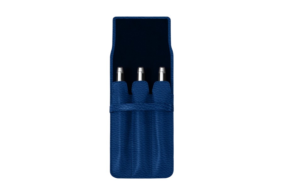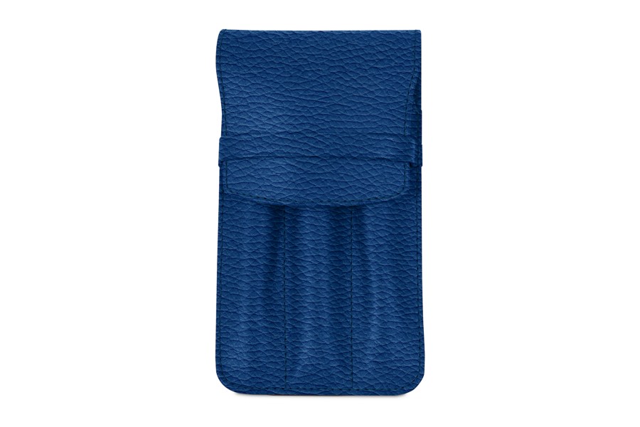 Etui für 3 Stifte - Königsblau - Genarbtes Leder