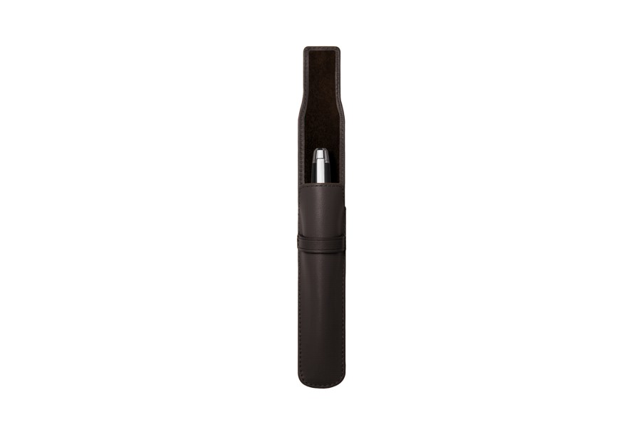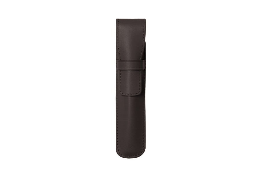 Etui für 1 Stift - Dunkelbraun - Echtes Straußenleder