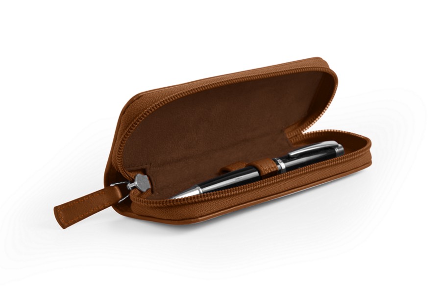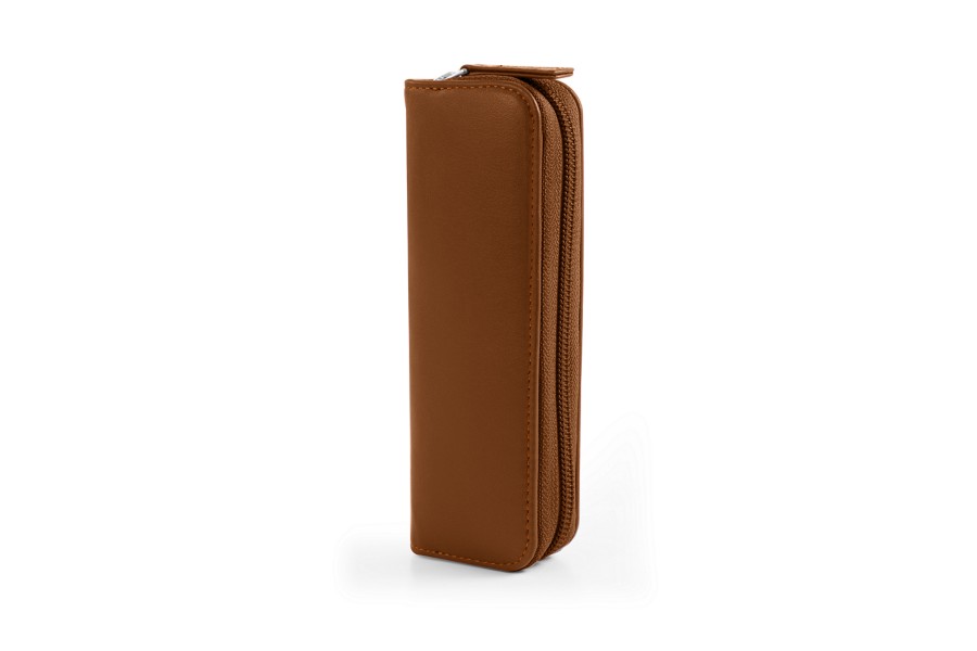 Täschchen für 2 Füllfederhalter mit Reißverschluss - Cognac - Glattleder