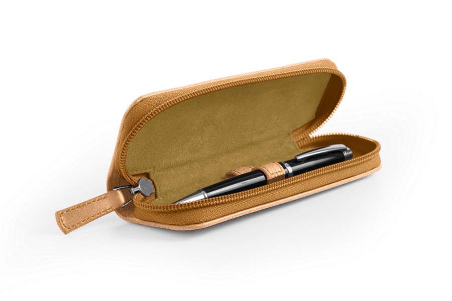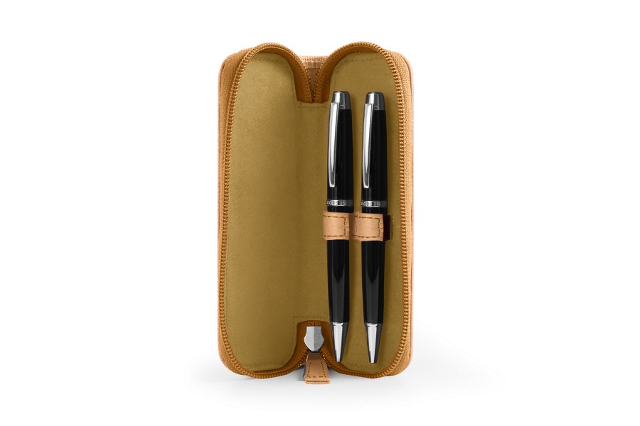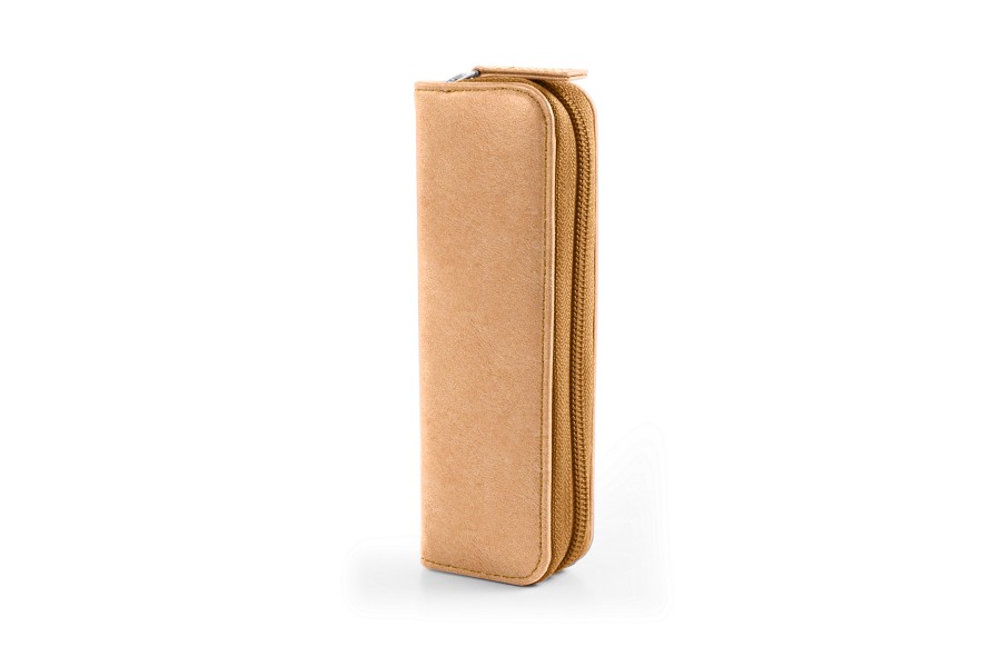 Täschchen für 2 Füllfederhalter mit Reißverschluss - Natur - Pflanzlich Gegerbtes Leder