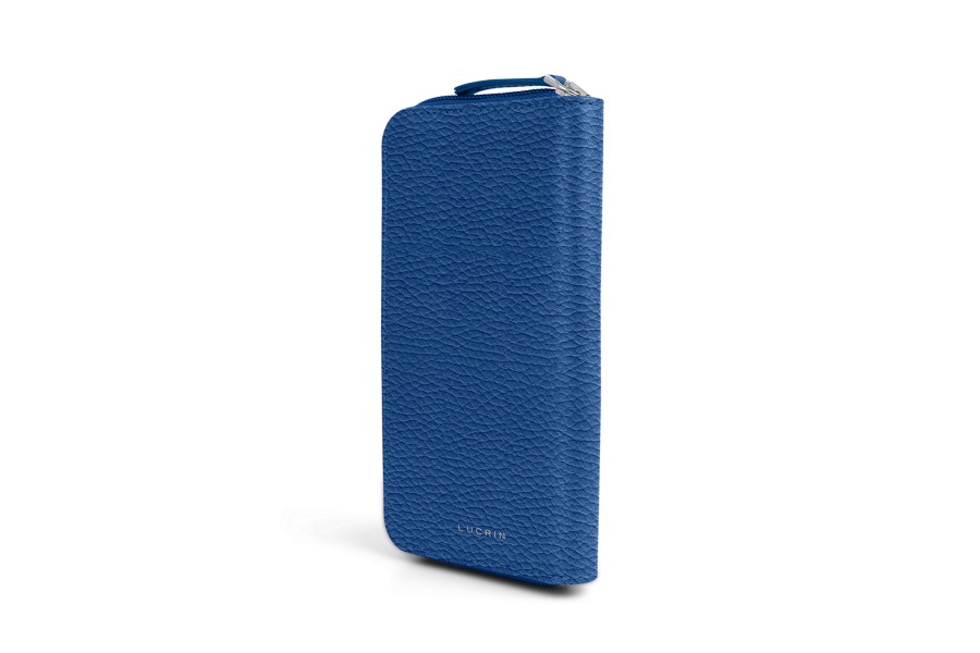 Genarbtes Rindsleder ist bei Luxuslederwaren sehr gefragt, insbesondere für Gepäckstücke. Die von Lucrin ausgewählte Narbung ist eher leicht, aber verleiht dem Material seine fühlbar besondere Oberfläche. Dieses Leder ist sehr widerstandsfähig und weniger empfindlich gegenüber Kratzspuren im Alltag.