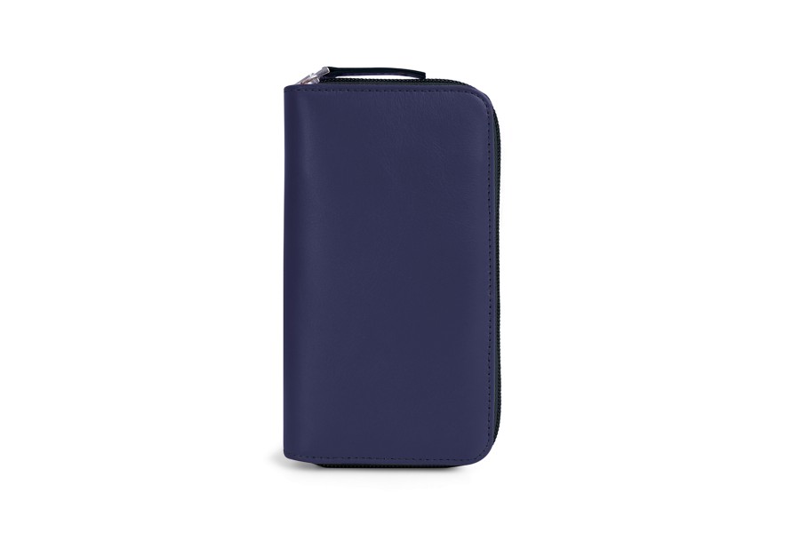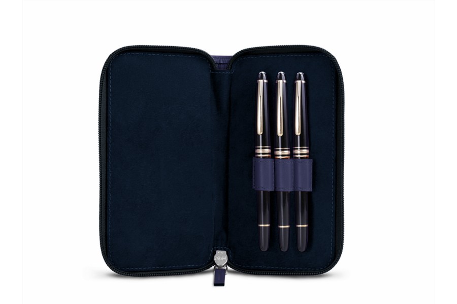 Täschchen für 3 Füllfederhalter mit Reißverschluss - Marineblau - Glattleder
