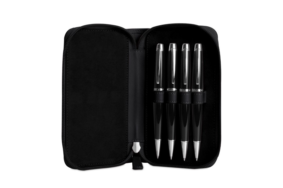Täschchen für 4 Füllfederhalter mit Reißverschluss - Schwarz - Glattleder
