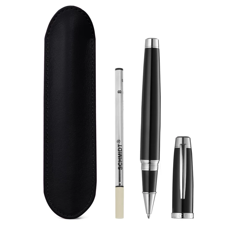 Der LUCRIN Rollerball-Stift - Maxi richtet sich an alle, die dem geschriebenen Wort Bedeutung beimessen. Für Berufstätige, Kreative und Liebhaber klarer Gedanken konzipiert, begleitet er jeden Schreibmoment mit Leichtigkeit und Präzision. Das Maxi-Format sorgt für eine ausgewogene, angenehme Handhabung – auch bei längeren Schreibphasen. Silberfarbene Akzente unterstreichen das klare Design, während die Rollerball-Spitze mit schnell trocknender schwarzer Tinte saubere, kontrollierte Linien ermöglicht. Geliefert wird der Stift in einem Lederetui, das mit Ihren Initialen personalisiert wird – ein täglicher Begleiter mit persönlicher Note. Entdecken Sie die Freude am Schreiben neu mit dem LUCRIN Rollerball-Stift - Maxi.