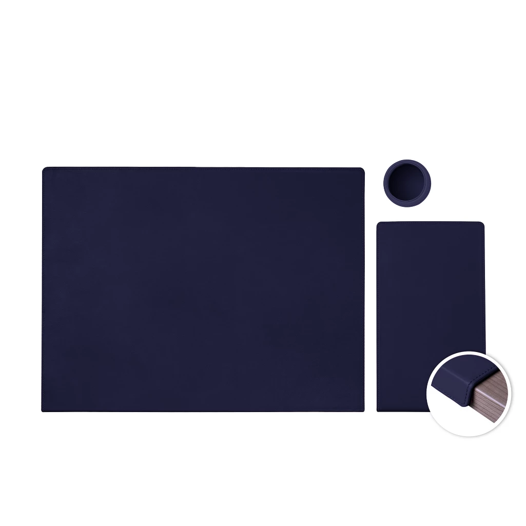 Das LUCRIN Schreibtischset mit Kantenschutz aus Leder sorgt auf jedem Schreibtisch für praktische Ordnung. Die Schreibtischunterlage und das Mauspad bestehen aus einer robusten, einseitig gebogenen Metallstruktur, die mit luxuriösem Leder und schützender Mikrofaser ummantelt ist. Die Kante und das Gewicht der Schreibtischunterlage verhindern ein Verrutschen und bieten auch bei stundenlangem Tippen Komfort für Handgelenk und Unterarm. Ein runder Stiftbehälter sorgt für zusätzliche Ordnung auf Ihrem Schreibtisch, indem er Ihre Stifte und andere lose Schreibwaren aufbewahrt. Personalisieren Sie das Schreibtischset mit der Gravur Ihrer Initialen oder Ihres Logos und kontrastierenden Nähten, so dass es perfekt in Ihr Büro passt.