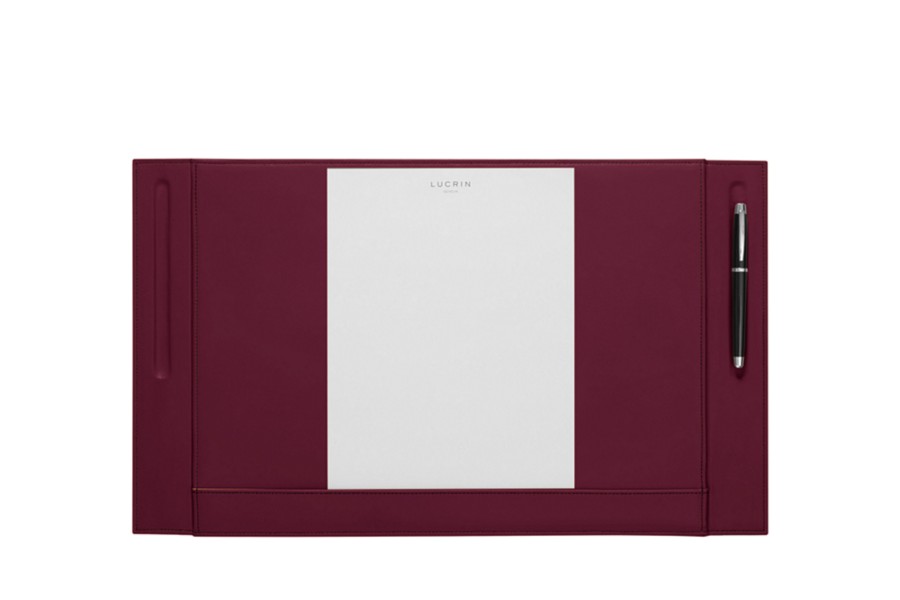 Schreibtischunterlage mit 2 Stifthalterungen - Weinrot - Glattleder