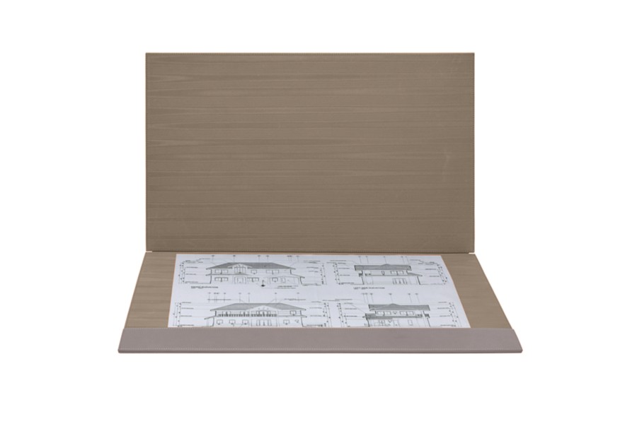 Die wohl edelste Schreibunterlage aus Leder für luxuriöse Büroräume. Da sie sich aufklappen lässt, können Sie im Handumdrehen zum Beispiel Ihre vertraulichen Dokumente oder ihre aktuellen Arbeitsunterlagen hineinlegen. So bleibt Ihr Schreibtisch für wichtige Geschäftstermine stets perfekt aufgeräumt. Dieses Luxusbüroaccessoire kann mit Ihren Initialen oder dem Logo Ihres Unternehmens personalisiert werden. Die Innenseite ist aus gleichfarbigem Moirégewebe gefertigt.