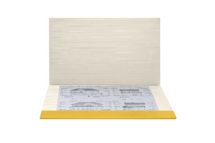 Die wohl edelste Schreibunterlage aus Leder für luxuriöse Büroräume. Da sie sich aufklappen lässt, können Sie im Handumdrehen zum Beispiel Ihre vertraulichen Dokumente oder ihre aktuellen Arbeitsunterlagen hineinlegen. So bleibt Ihr Schreibtisch für wichtige Geschäftstermine stets perfekt aufgeräumt. Dieses Luxusbüroaccessoire kann mit Ihren Initialen oder dem Logo Ihres Unternehmens personalisiert werden. Die Innenseite ist aus gleichfarbigem Moirégewebe gefertigt.