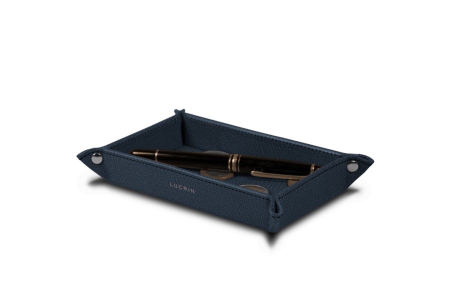 Hier haben wir das kleinste Mitglied unserer rechteckigen Taschenleerer von Lucrin. Sein relativ kleines Format ist ideal, um beispielsweise Ihren Schmuck oder das Kleingeld aus Ihren Taschen abzulegen, bevor Sie ins Bett gehen. Der kleine Leder-Taschenleerer ist auch ein schönes Geschenk an Menschen, die Ihnen lieb sind, besonders wenn Sie das Stück über die zahlreichen Optionen (Farben, Lederart, Initialen, Garn etc.) individualisieren.