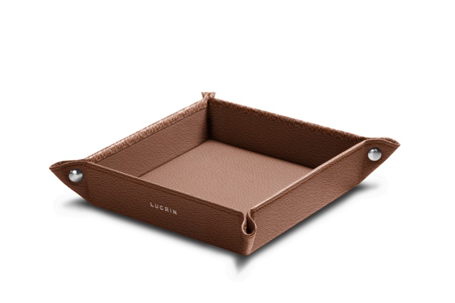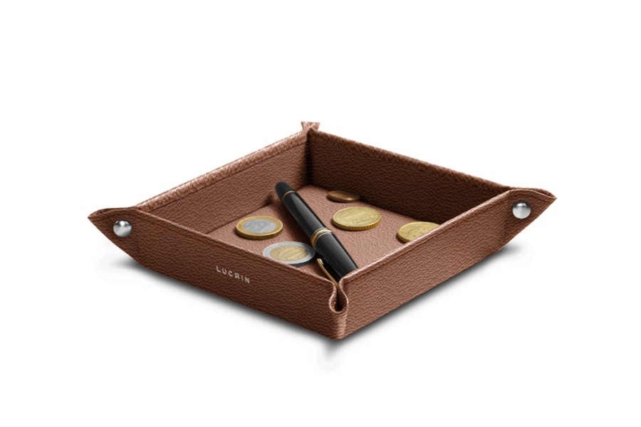 Entdecken Sie den festen kleinen Taschenleerer der Kollektion Lucrin. Durch die hochwertige Verarbeitung wird das vollständig aus natürlichem Leder gefertigte Accessoire ein raffiniertes und gleichzeitig überaus praktisches Dekorationsobjekt. Ob im Büro oder zu Hause, der quadratische Taschenleerer ist garantiert ein Hingucker und befreit Ihre Hosen- und Jackentaschen von den kleinen nützlichen und weniger nützlichen Dingen des Alltags. Die Ecken werden durch 4 Metallnieten zusammengehalten.
