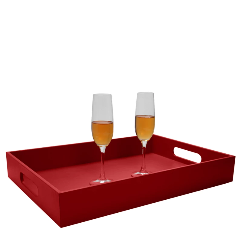 Tablett aus Leder mit Holzkonstruktion und Henkeln zum bequemen Tragen. Für alle, die Ihre Gäste elegant zu empfangen wissen. Dieser Artikel wird ohne Gläser verkauft