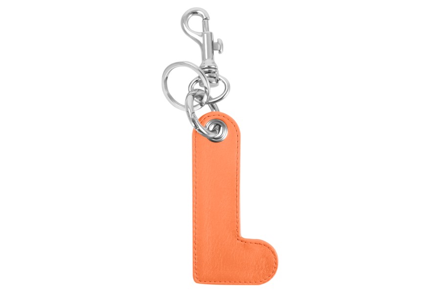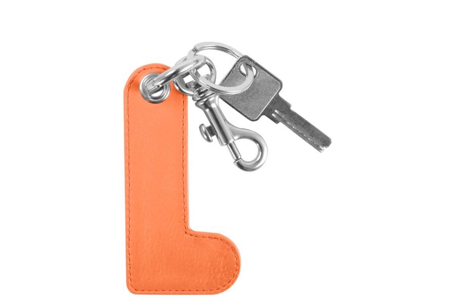 Oversized keychain consisting of an L-shaped leather cut-out, 2 rings and a high-end carabiner hooked through an eyelet. This key holder is ideal to keep all your keys and/or can be used as a trendy bag accessory, especially as it comes in many leathers and colours. Pick the one keyring that suits your bag or looks.