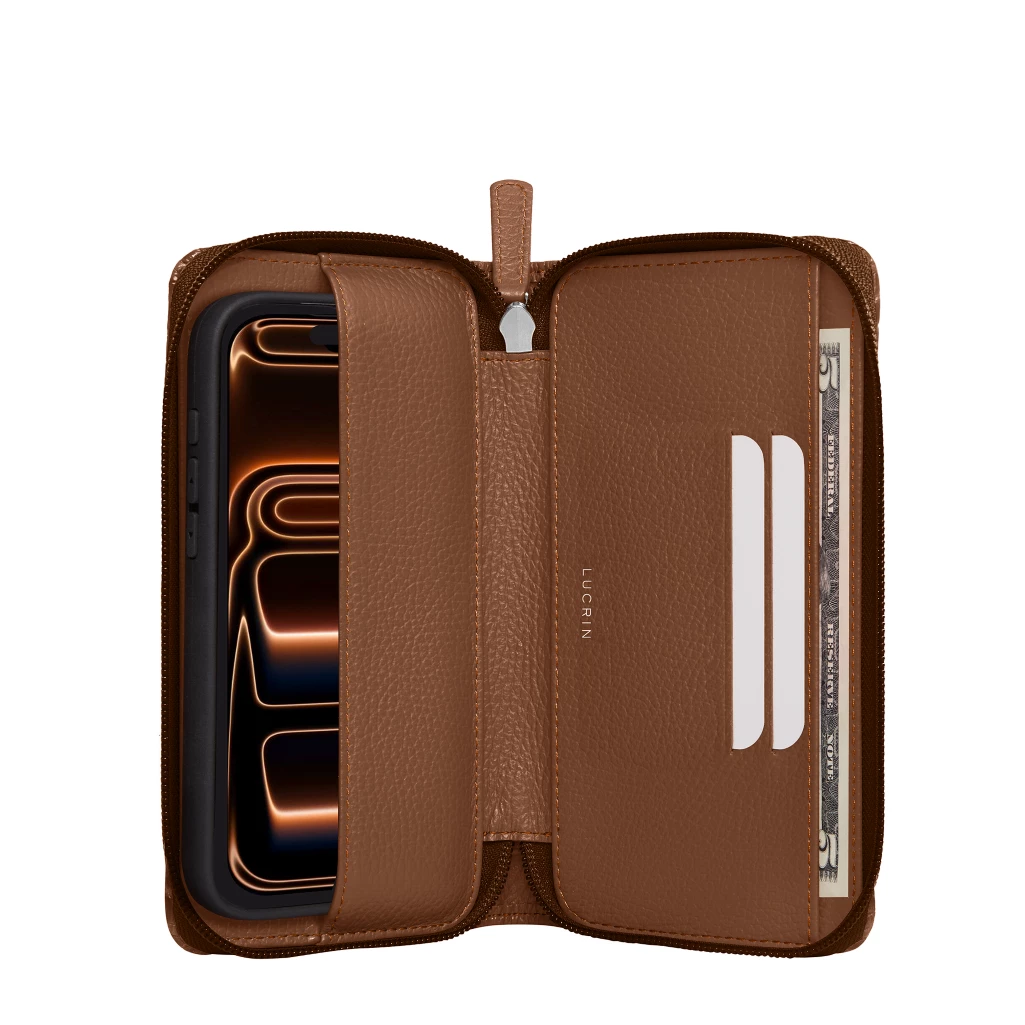 Diese iPhone 17 Pro Max Reißverschluss-Brieftasche wurde für alle entwickelt, die gerne alles an einem Ort aufbewahren, und verbindet Funktionalität mit handwerklicher Eleganz. Das sichere Reißverschlussdesign lässt sich öffnen und offenbart ein weich gefüttertes Fach für Ihr Smartphone, Kartenfächer und Platz für alles, was wirklich wichtig ist – alles umhüllt von glattem Vollnarbenleder. Zwei Kartenfächer und zwei Fächer sorgen für Ordnung und Übersichtlichkeit – von gefalteten Notizen bis hin zu Ihrem iPhone 17 Pro Max. Stecken Sie Ihr Smartphone ohne Hülle in eines der Fächer oder verwenden Sie das Hauptfach, wenn es mit einer schlanken Hülle ausgestattet ist. Jeder Reißverschluss, jede Naht, jedes Detail ist darauf ausgelegt, Sie im Alltag zu begleiten – egal, ob Sie zu einem Meeting oder einem entspannten Abend aufbrechen. Wählen Sie Ihre Farbe und Lederart, und fügen Sie Ihre Initialen hinzu. Ob Sie einen minimalistischen Look oder eine markante Note bevorzugen, diese Reißverschluss-Brieftasche aus Leder für das iPhone fügt sich angenehm in Ihren Alltag ein. Gestalten Sie Ihre iPhone 17 Pro Max Reißverschluss-Brieftasche ganz individuell – und machen Sie sie zu einem unauffälligen Markenzeichen Ihres Alltags.