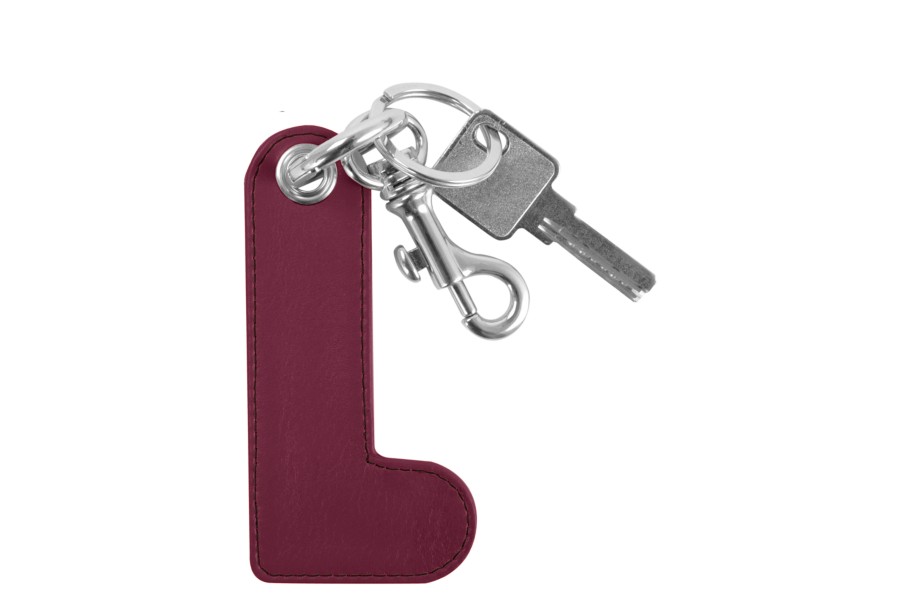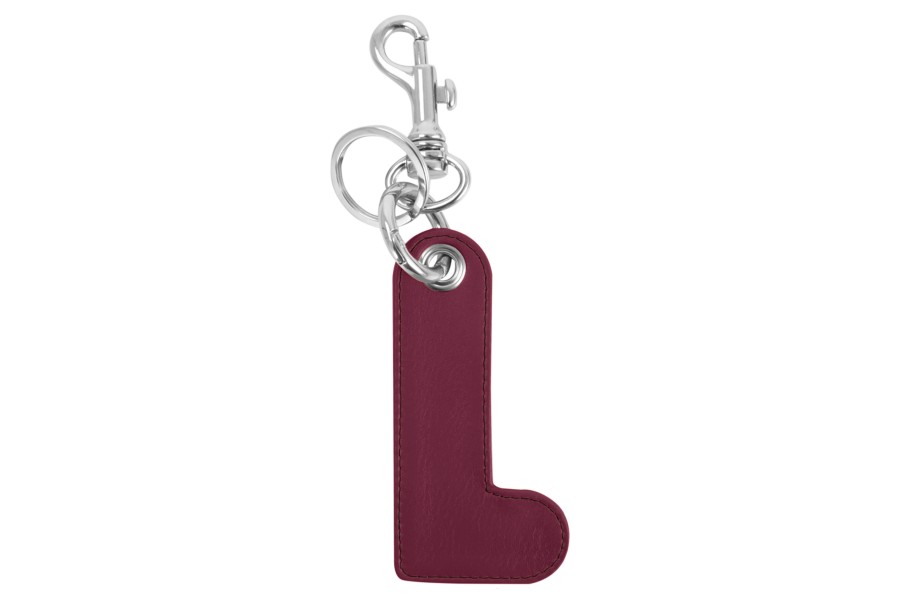 Oversized keychain consisting of an L-shaped leather cut-out, 2 rings and a high-end carabiner hooked through an eyelet. This key holder is ideal to keep all your keys and/or can be used as a trendy bag accessory, especially as it comes in many leathers and colours. Pick the one keyring that suits your bag or looks.