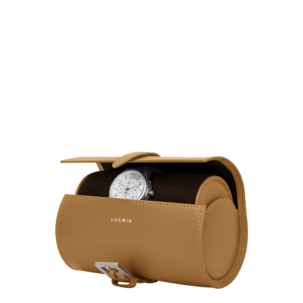 Alle Liebhaber von Luxusuhren mögen es, zwischen ihren verschiedenen Uhren zu wechseln, damit sie zur Kleidung passt oder einfach aus Spaß. Dieses wunderschöne runde Lederetui wurde entworfen, damit Sie auf Reisen Ihren begehrten Zeitmesser griffbereit haben. Bewahren Sie bis zu drei Uhren sicher auf, indem Sie sie um das runde Kissen im Inneren schnallen. Für zusätzlichen Schutz wurde das Innere des Etuis speziell mit Mikrofaser ausgekleidet. Das Ganze wird von einer silberfarbenen Schnalle sicher zusammengehalten.