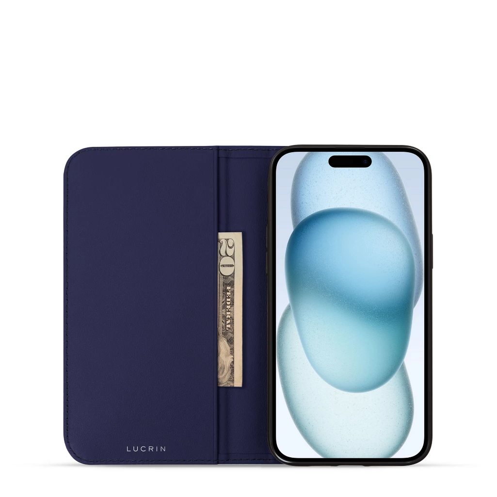 Minimalistische Hülle – iPhone 15 Marineblau  - Glattleder