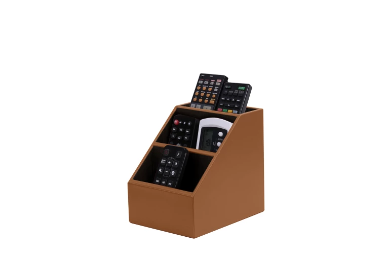 Suchen Sie ständig nach Ihrer Fernbedienung? Dies ist das perfekte Produkt für Sie. Diese Aufbewahrungsbox aus Holz mit Lederbezug ist für das elegante Verstauen Ihrer Fernbedienungen unverzichtbar. Bewahren Sie für makellose Ordnung in Ihrem Wohnzimmer oder Büro bis zu acht Fernbedienungen in der Box auf. Die Veredlung aus natürlichem Leder verleiht der Aufbewahrungsbox einen zeitgemäßen Look, der zu jeder Inneneinrichtung passt. Die Fernbedienungsaufbewahrungsbox kann ebenfalls als Ordnungsbox für Bürozubehör genutzt werden.