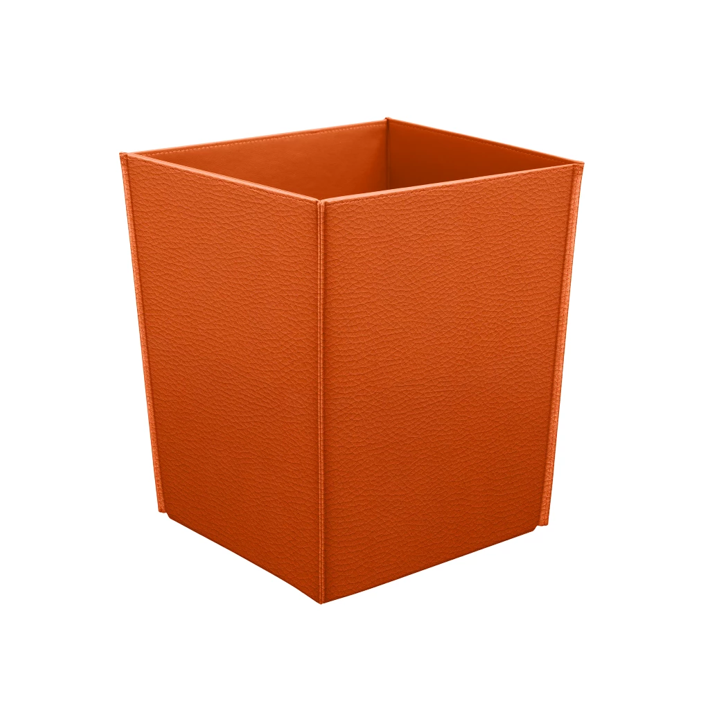 Quadratischer Papierkorb Orange  - Genarbtes Leder