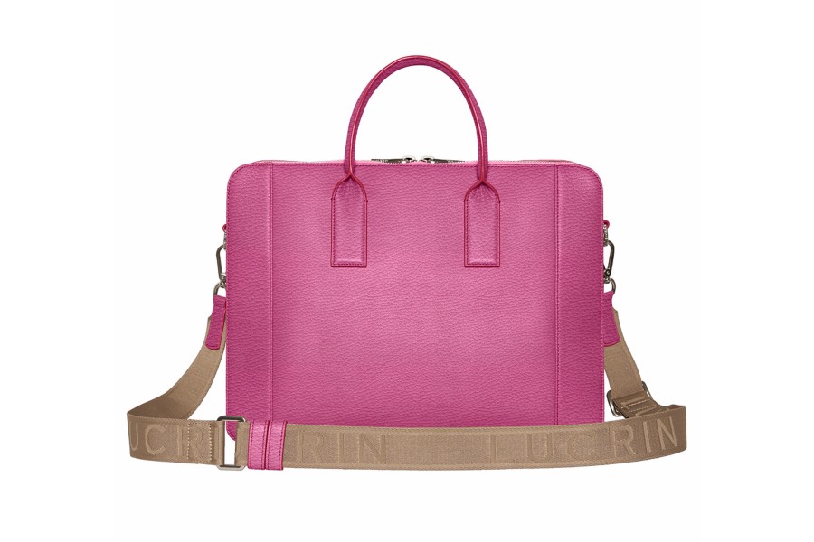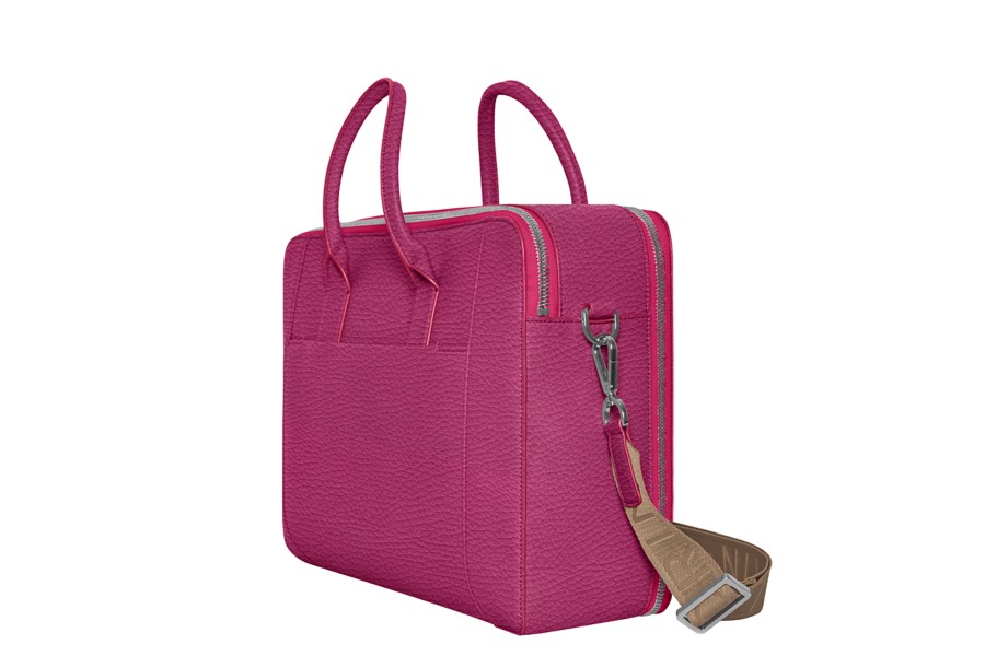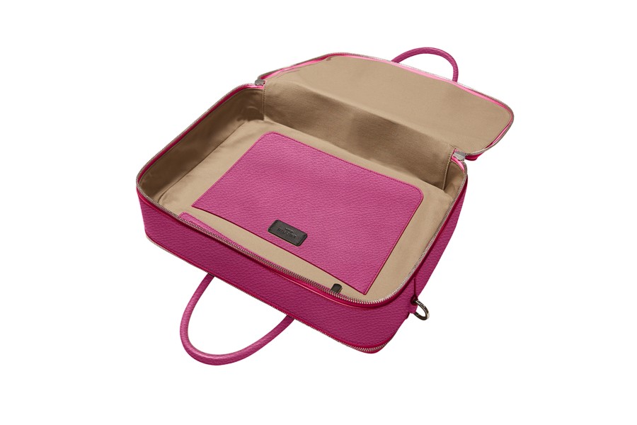 Reise-Aktentasche - Fuchsia - Genarbtes Leder