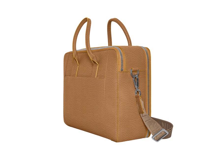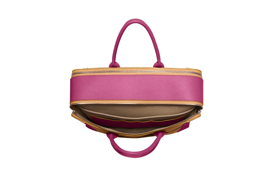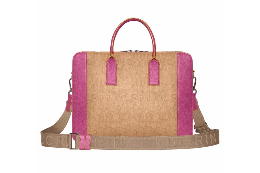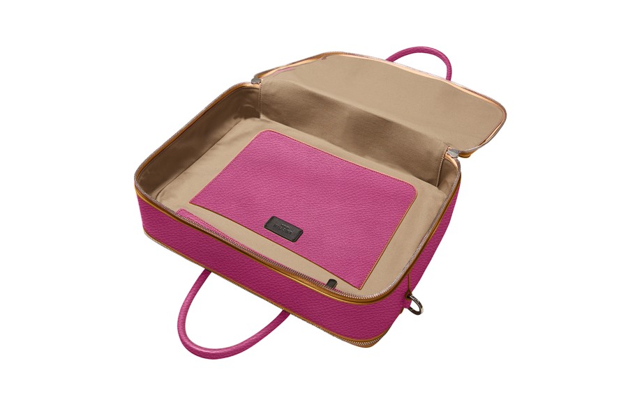 Reise-Aktentasche - Ocker-Fuchsia - Genarbtes Leder