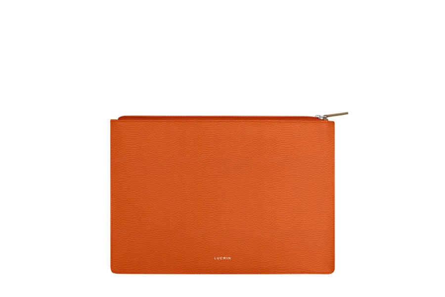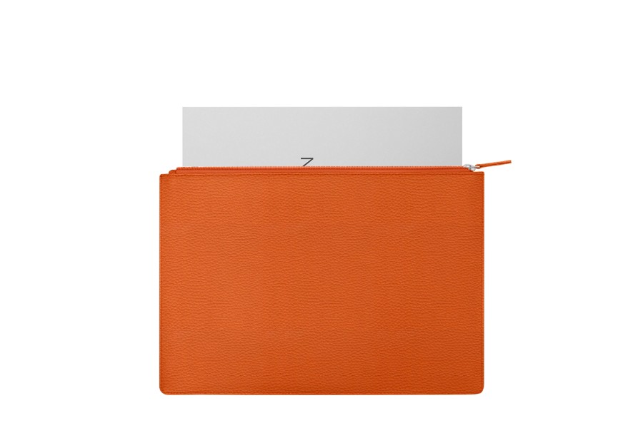 Dokumententasche A4 - Orange - Genarbtes Leder