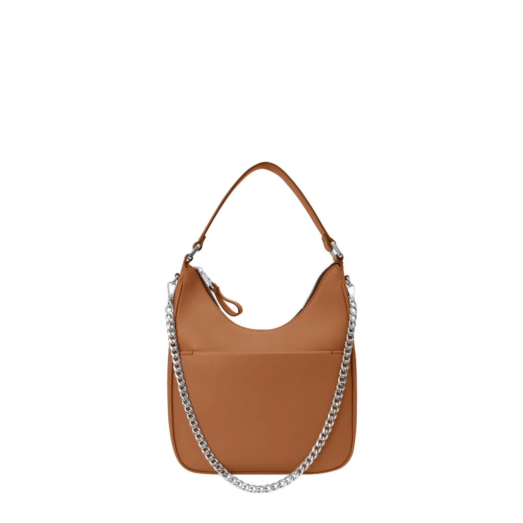 Hobo Bag Umhängetasche mit Kette - L5 - Cognac - Kalb Leder
