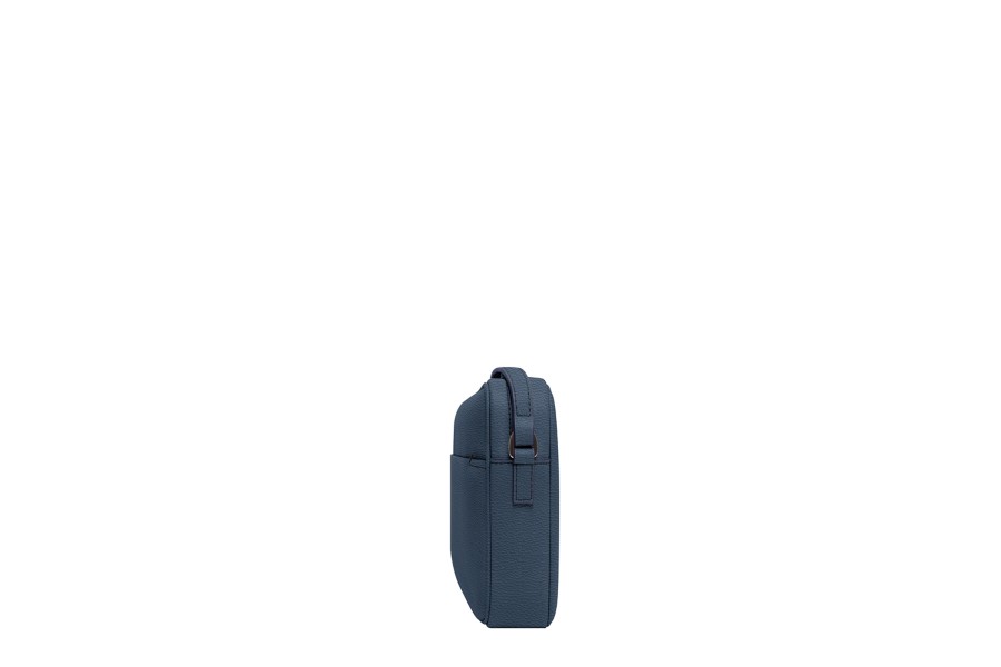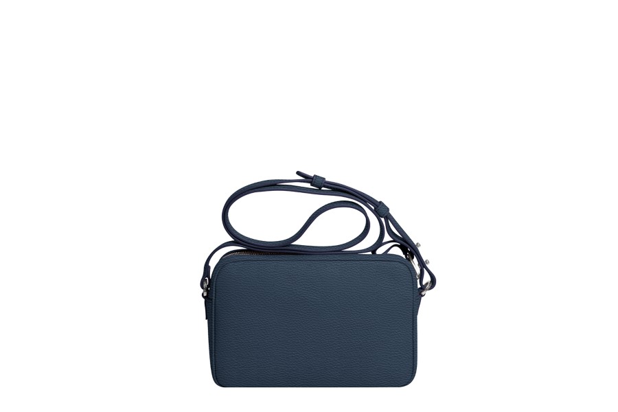 Kleine L5 Umhängetasche - Marineblau-Weinrot - Genarbtes Leder